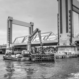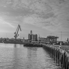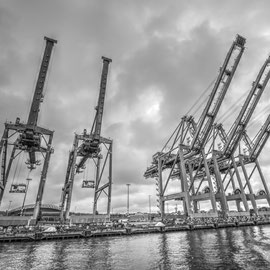 Elke constructie draagt een eigen ritme. Een wirwar van lijnen, hoeken en volumes die het oog blijft volgen. De haven is een smeltkroes van deze industriële choreografie. Juist die visuele chaos maakt het onweerstaanbaar.