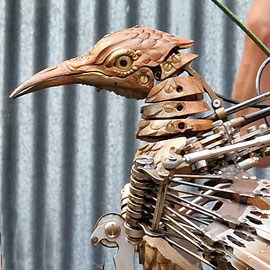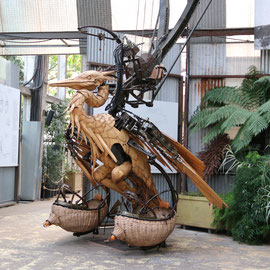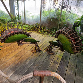 zien. De materialen zijn ruw en de mechanismen eenvoudig. Bij alle sculpturen, van staal of