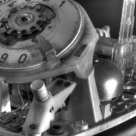 De bellentelefoon met draaischijf was mijn witte raaf. Ik móest er een hebben. Niet te vinden bij de kringloop, niet op zolder, niet in de kelder van vergeten techniek. Tot Koningsdag. Mijn oom vond er een. Twee euro. Vreselijk smerig. Maar perfect. Bellen. Draaischijf. Een knop waarvan niemand meer weet waar die voor diende. Een hoorn met een draad die standaard in de knoop zat. Draadjes met een eenvoudig schroefje op hun plek gehouden. Stof. Vettigheid. Jarenlang gebruik. Een fotografische droom.